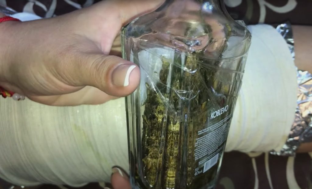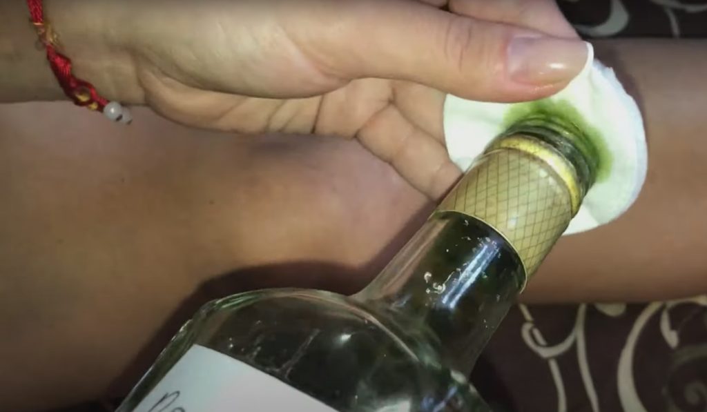 Po tym czasie domowy środek na ból kolan jest gotowy. Teraz weź wacik i nasącz go substancją z butelki.