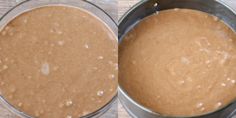 Formę do pieczenia wysmarować olejem i oprószyć mąką. Wlać ciasto. Piec przez ok. 45 minut w 190’C. Po tym czasie za pomocą suchego, drewnianego patyczka sprawdzić, czy ciasto jest dobrze upieczone.