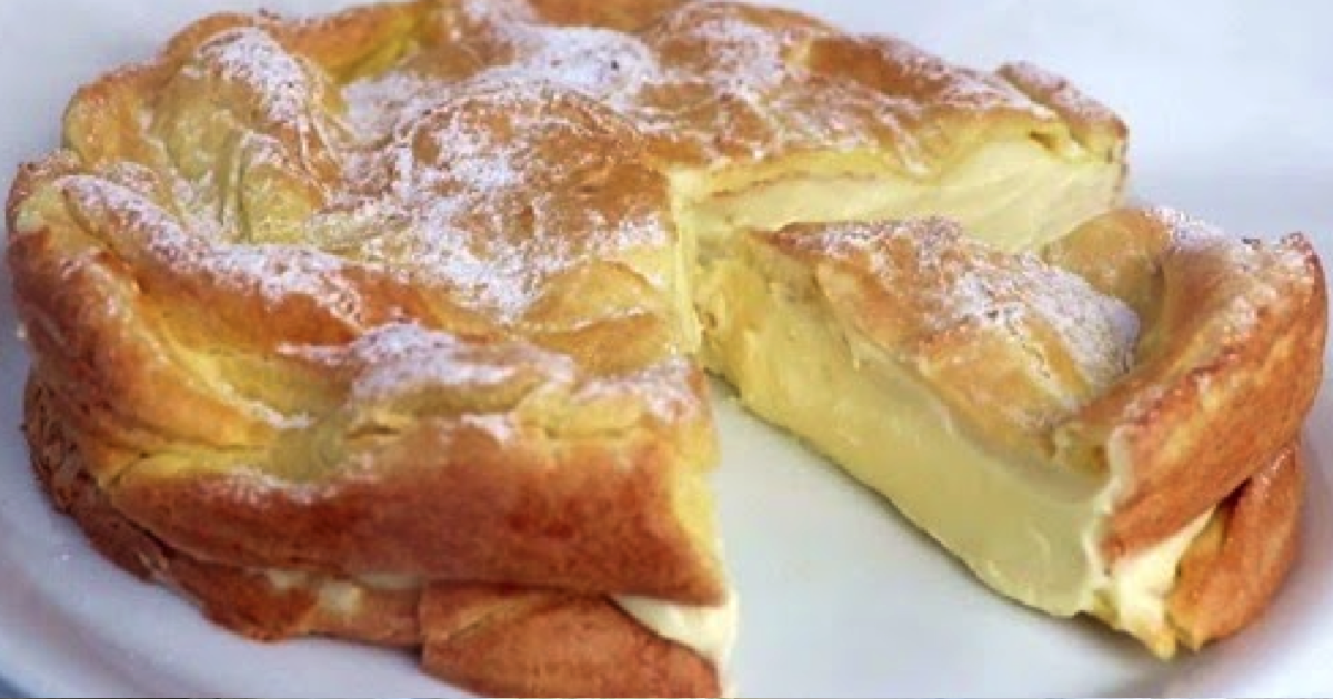 Włóż do foremki pierwsze ciasto, przełóż je kremem budyniowym i umieść na górze drugie ciasto. Możesz posypać wierzch cukrem pudrem, aby pięknie się prezentowało. Ciasto schowaj do lodówki i podawaj na zimno – wtedy jest najsmaczniejsze.