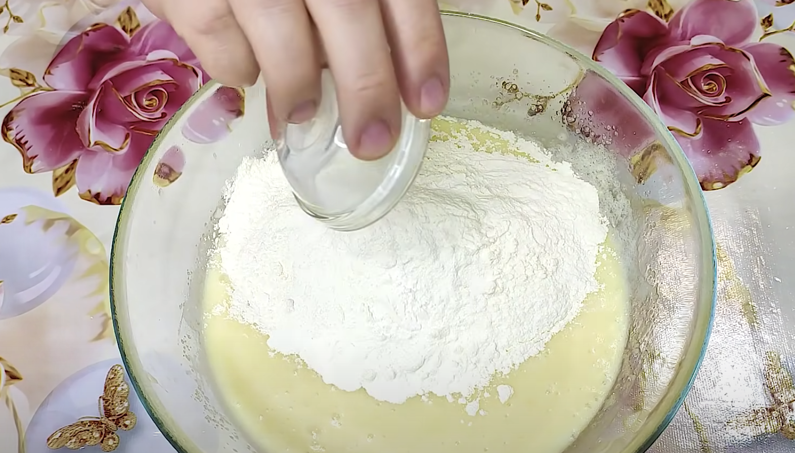 Przygotowanie zacząć należy od ubicia jajka z cukrem z użyciem trzepaczki. Następnie do tego trzeba dodać roztopione masło oraz jogurt i wymieszać to. Stopniowo należy dodawać mąkę oraz proszek do pieczenia, oraz wymieszać do uzyskania gęstego jednorodnego ciasta.