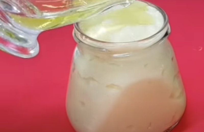 Słoik o pojemności 300 ml należy wysterylizować. Czosnek obrać, po czym umieścić w blenderze i zmiksować. Dodać sól, sok z cytryny oraz oliwę z oliwek. Utrzeć na gładką masę. Gotową pastę przełożyć do słoika.