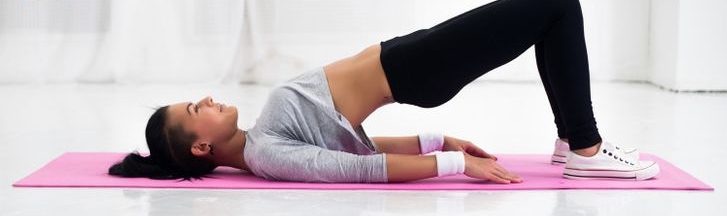 Możesz wykonać mostek, leżąc na plecach, z ugiętymi kolanami, stopami pod kolanami i rękami po bokach. Następnie podnieś biodra prosto w górę z kolan w kierunku ramion. Utrzymuj tę pozycję tak długo, jak tylko potrafisz. Ważne jest, aby wzmocnić brzuch i uda. Ćwiczenie to można powtórzyć w trzech seriach.