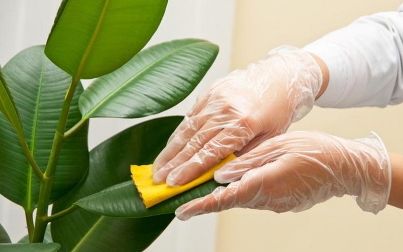 Nawilżona mlekiem szmatka świetnie nadaje się do przetarcia liści fig. Po takim zabiegu pozostają one piękne i lśniące.
