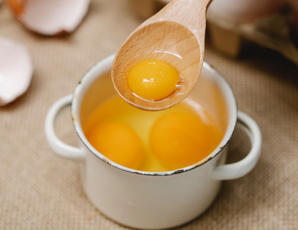 Mleko i olej roślinny wlewamy do miski, dodajemy przesianą mąkę pszenną i mieszamy, tak, by uzyskać jednolitą masę. Potem oddzielamy żółtka od białek. Żółtka dodajemy do masy, którą dzielimy na dwie części i wkładamy je do dwóch osobnych misek.