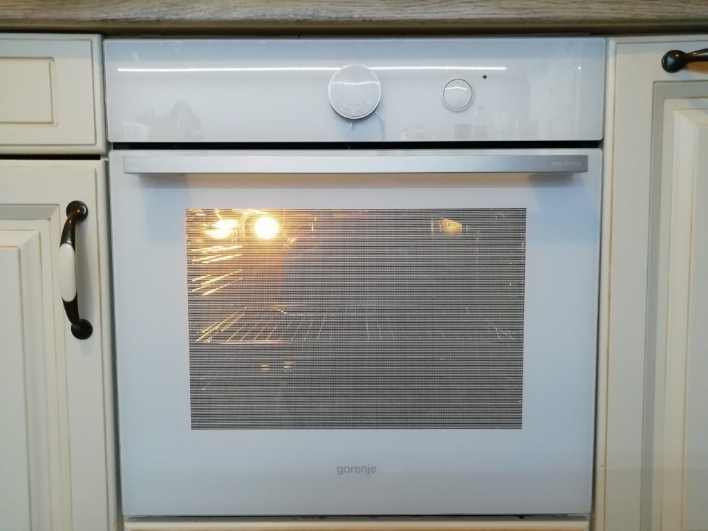 Następnie nakładamy ciasto waniliowe, staramy się zrobić to równomiernie. Górę ciasta dekorujemy płatkami czekoladowymi według własnych upodobań. Na blaszkę do pieczenia wlewamy około 1 cm wrzącej wody i kładziemy na nią formę z ciastem.