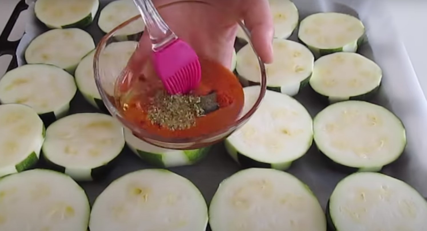 Mieszankę ziół, która jest połączeniem oleju i przypraw (sól pieprz, tymianek lub papryka), które zostały wcześniej przygotowane, można obficie nakładać na pokrojone cukinie. Należy pamiętać, aby obtoczyć każde warzywo. Całość piecz przez pół godziny w rozgrzanym piekarniku w temperaturze 180 stopni Celsjusza.
