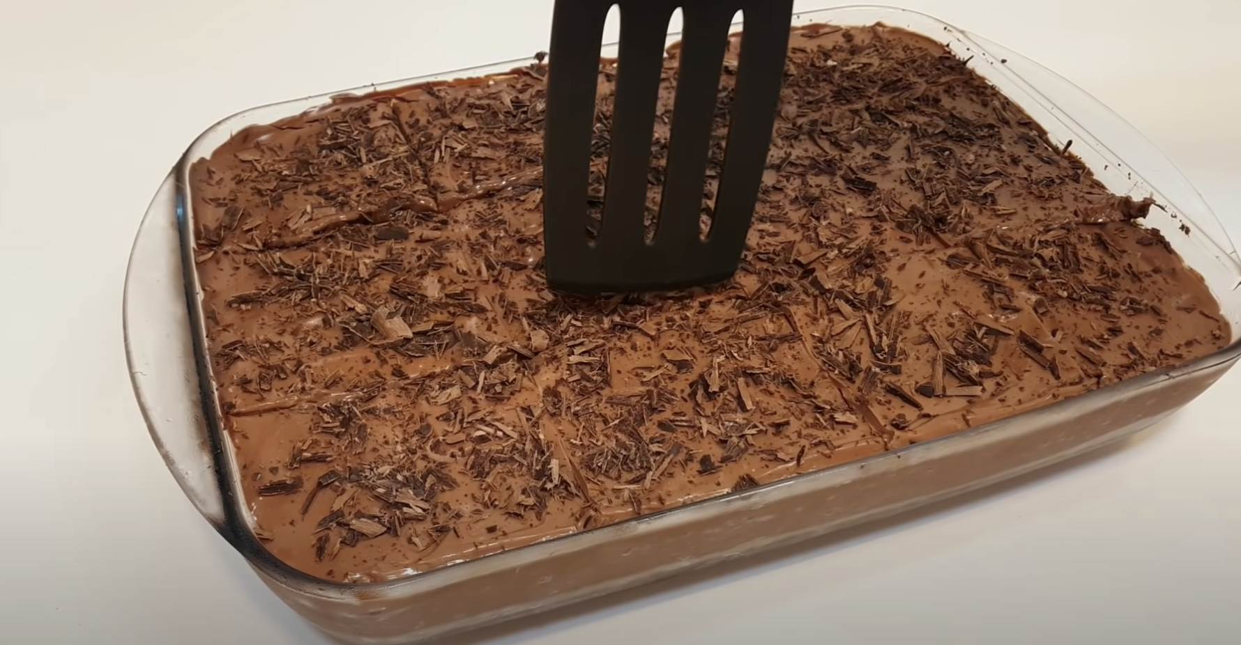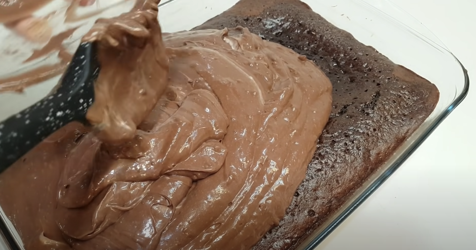 Całość wylewamy na nasze ciasto i dokładnie rozprowadzamy równomiernie na całości. Na sam koniec zadbajmy też o wygląd zewnętrzny – zetrzyj pozostałą część czekolady na wierzchu naszego ciasta.