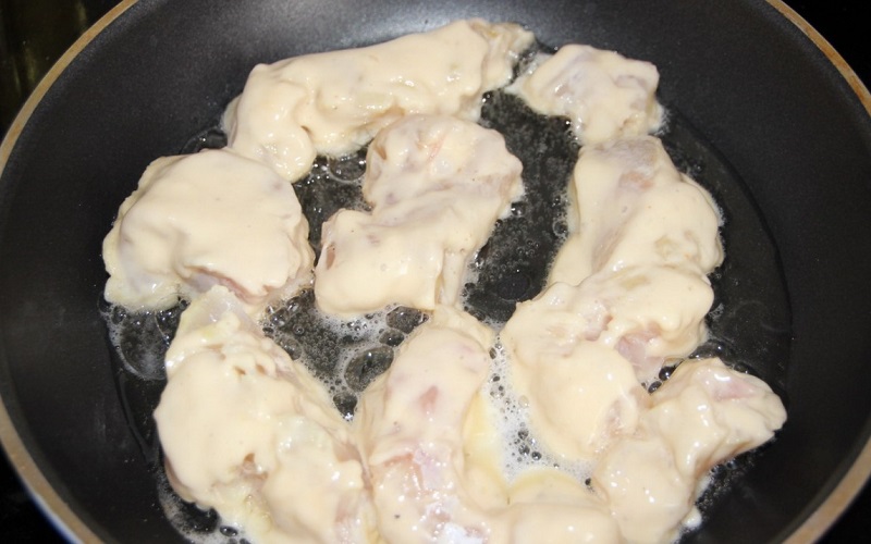 Do miski wbij jajko, dodaj przyprawy i mąkę kukurydzianą. Wszystko dokładnie wymieszaj i zanurz plastry filetów rybnych. Uwaga. Rybę w cieście z mąki kukurydzianej najlepiej smaży się na bardzo dużym ogniu.