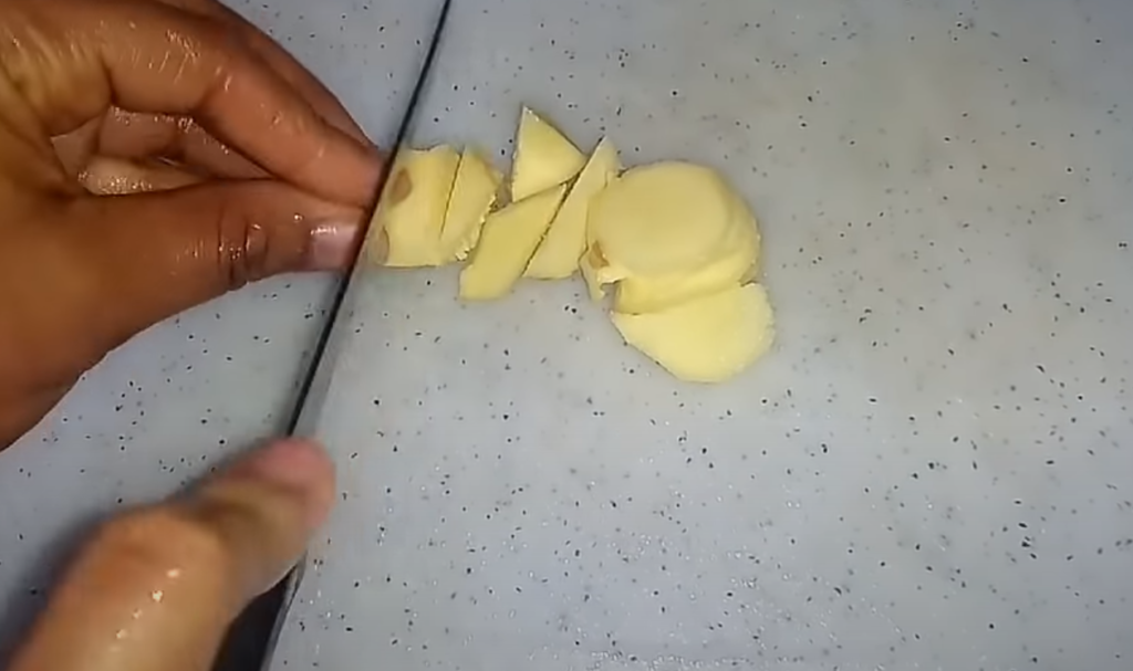Składniki umyj pod bieżącą wodą, obierz imbir i pokrój go w kostkę.