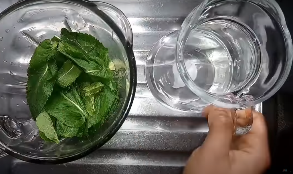 W towarzystwie świeżej mięty niech dołączy do pozostałych składników czekających w blenderze. Całość zalej wodą i mieszaj do powstania gładkiej masy.