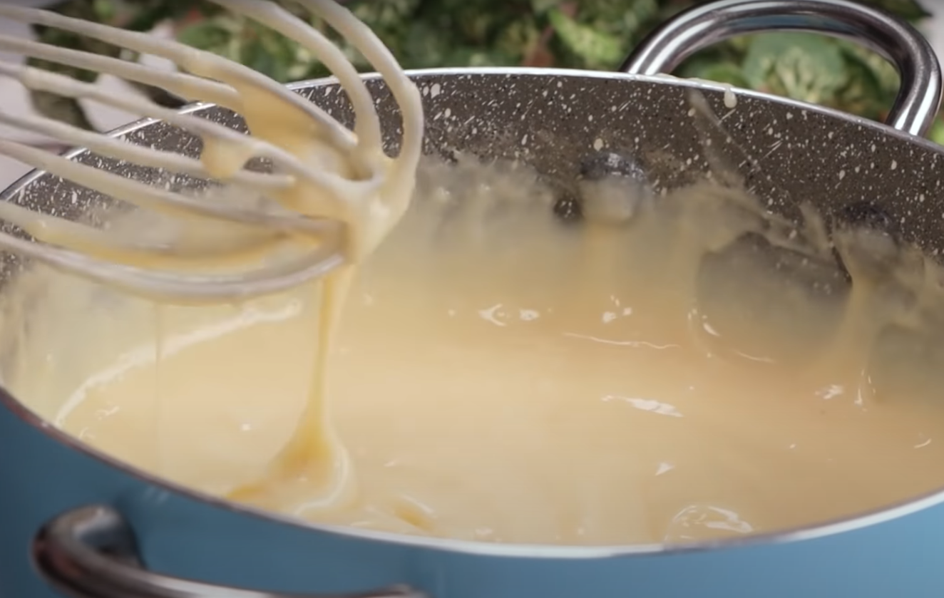 W misce połącz za pomocą trzepaczki mąkę, cukier, cukier waniliowy i jajka. W garnku zagotuj mleko i dodaj do niego powstałą masę. Gotuj razem aż do zgęstnienia kremu. Pod koniec dodaj miękkie masło.
