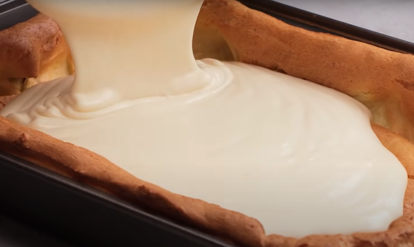 Tak powstałym kremem polej ciasto i wygładź powierzchnię. Wstaw całość do lodówki na 2 godziny.