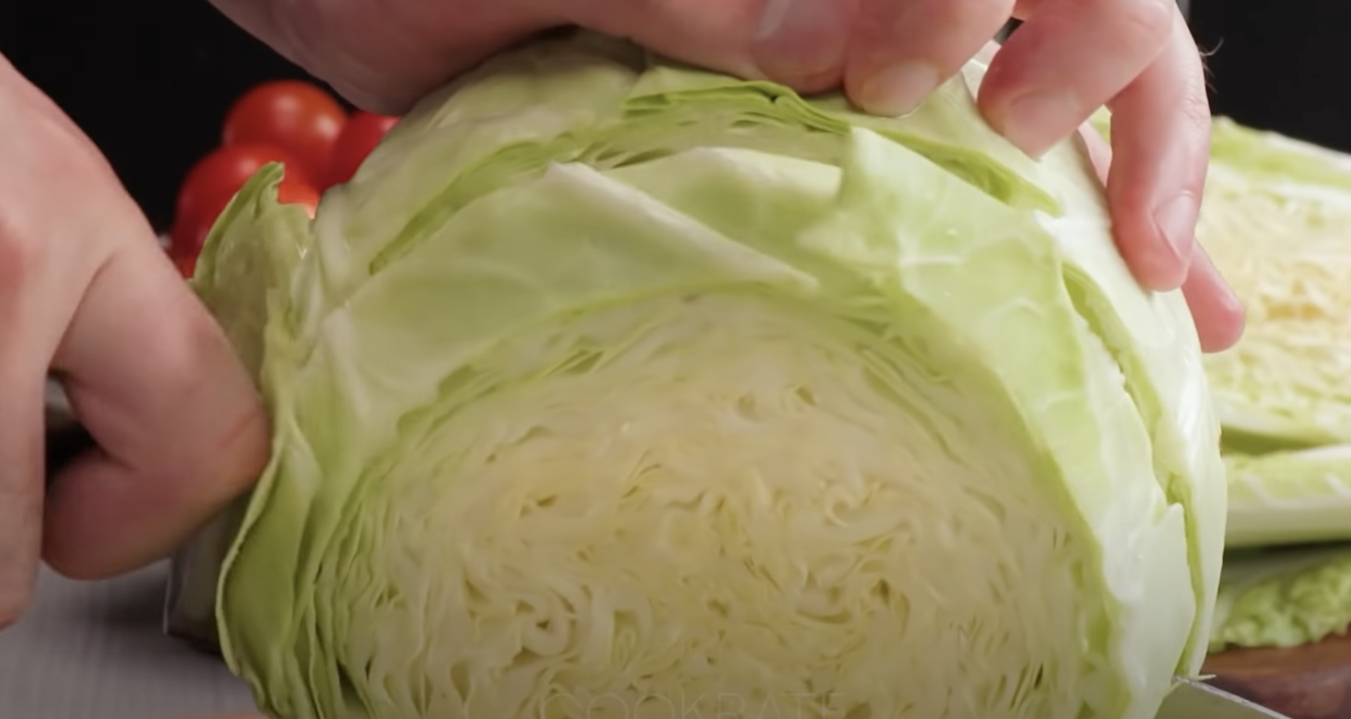 Umytą kapustę kroimy na grube plastry.