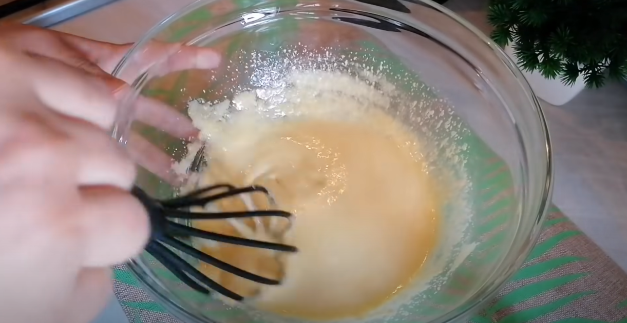 W misce wymieszaj cukier i żółtka. Wymieszaj z roztopionym masłem.