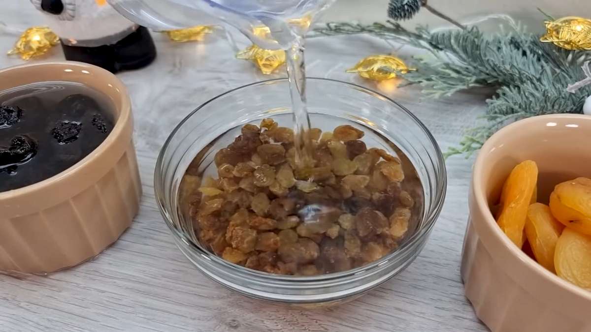 Umieść owoce w misce i przykryj zimną wodą. Pozostawić na 30 minut. Umieść orzechy na gorącej, suchej patelni, aby je usmażyć. Dzięki temu łatwiej będzie usunąć skórkę. Po pół godzinie odlej wodę z owoców.