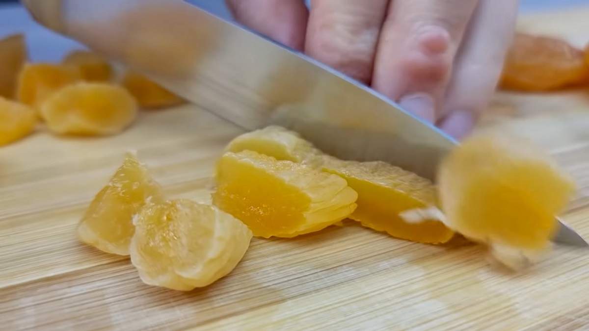 Zredukuj kawałki śliwek, moreli i orzechów włoskich.