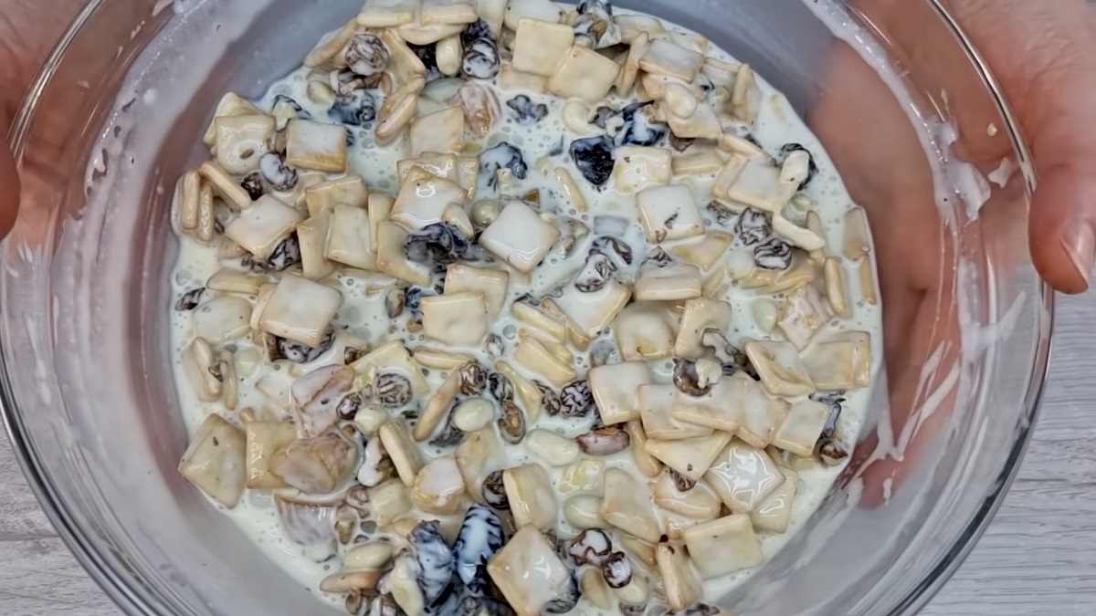 Połóż folię na wierzchu masy i w razie potrzeby umieść nad nią talerz lub deskę, aby delikatnie ją obciążyć. Odstawić masę do lodówki do zastygnięcia. Folię można zdjąć, a ciasto umieścić na talerzu następnego dnia. Możesz zmienić podstawowy przepis, dodając do niego suszone owoce, takie jak daktyle, jabłka lub banany.