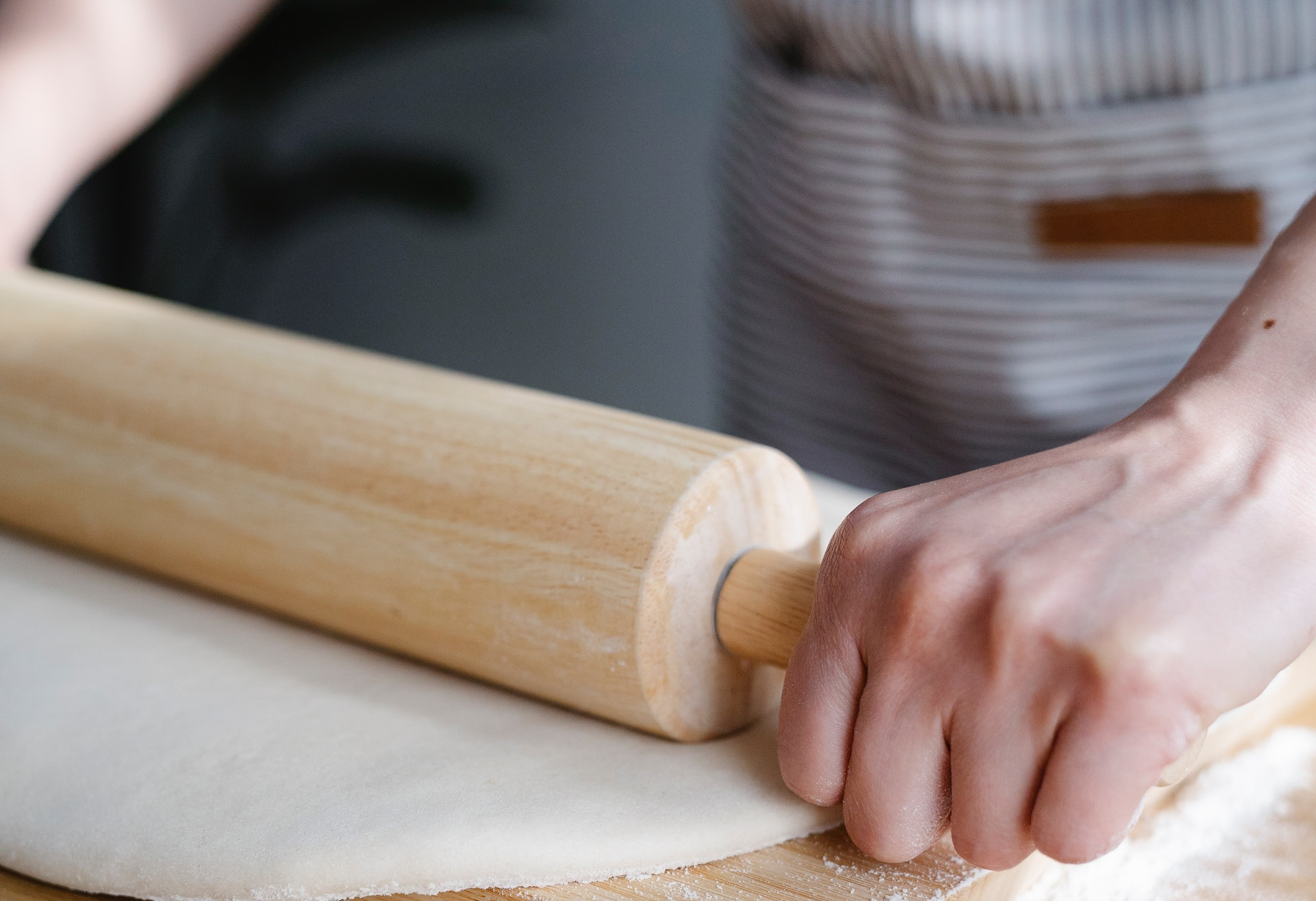 Wyrośnięte ciasto podziel na 10 równych części. Każdą z nich zagnieć i pozostaw jeszcze na kilka minut na blacie. Następnie, przy pomocy wałka zwijaj z ciasta rogaliki.