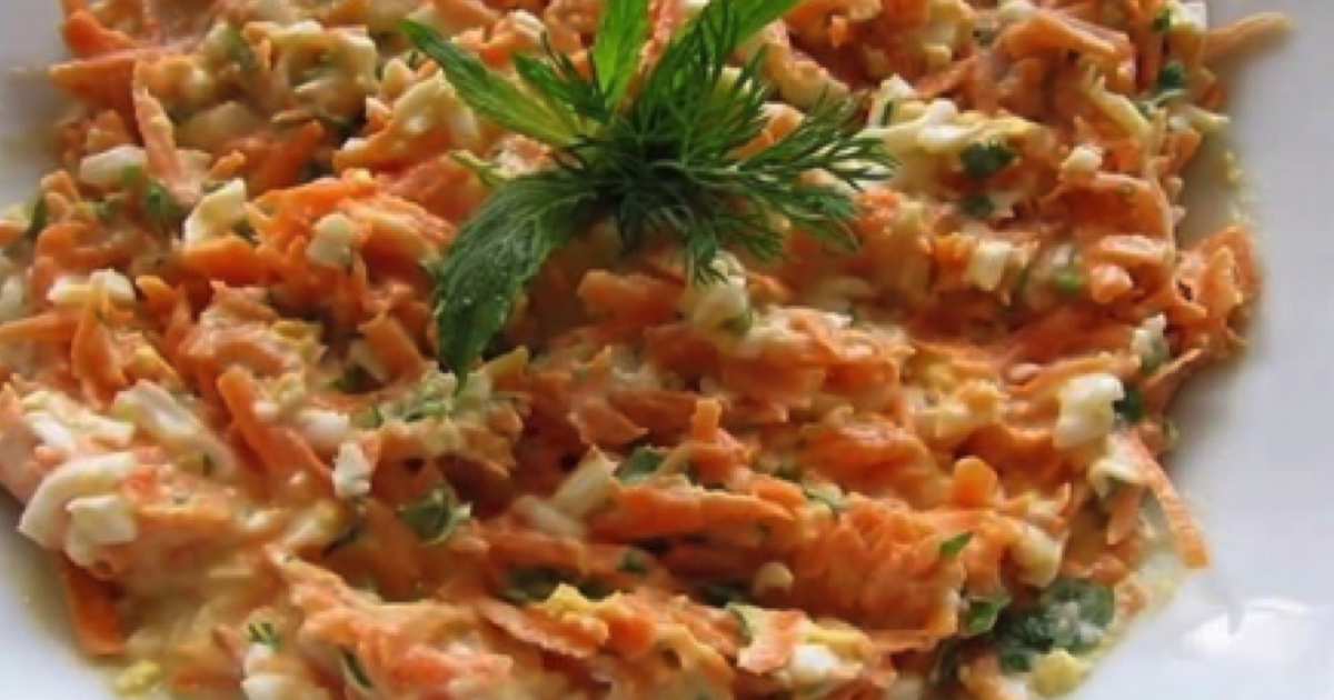 Marchewki umyj, obierz i zetrzyj na średnich oczkach tarki. Jajka obierz, posiekaj w drobną kostkę lub zetrzyj na tarce. Czosnek drobno posiekaj lub przepuść przez praskę. Wszystkie składniki wymieszaj ze śmietaną bądź jogurtem, dopraw solą i przyprawami wedle własnych upodobań. Sałatka gotowa. Smacznego!
