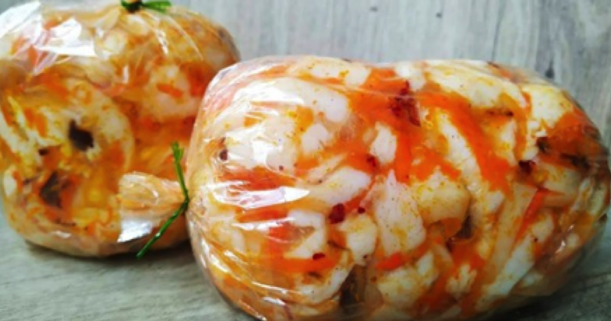 Mięso podzielone na pół wsadź w dwa osobne rękawy do pieczenia. Zwiń je i upuść powietrze. Krawędzie zwiąż. Połóż rękawy na formie do pieczenia. Piekarnik rozgrzej do temperatury 170 stopni. Piecz potrawę przez godzinę. Następnie ostudź i przygnieć przedmiotem ważącym około kilograma. Wsadź do lodówki.
