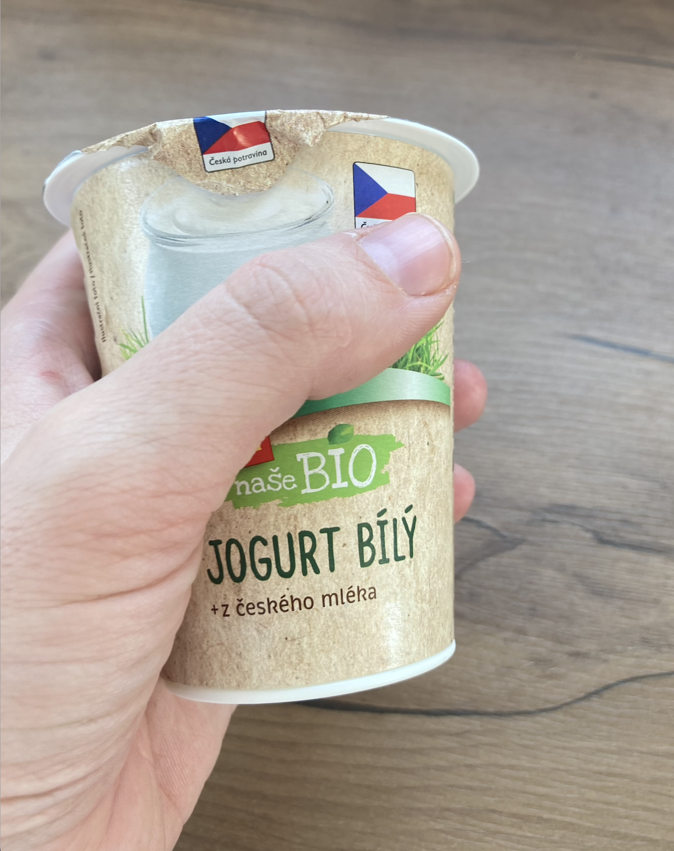 Zrób sos jogurtowy, wlewając jogurt do miski i dodając zmielone ząbki czosnku. Wszystko połączyć.