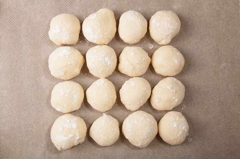 Uformuj kulki z ciasta, lekko obtocz je w mące.