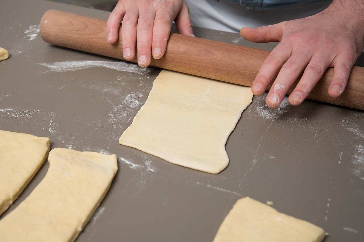 Po tym czasie poodrywaj od ciasta kawałki mniej więcej 70-80 g. Każdy zawiń w folię i pozostaw na 15 min.