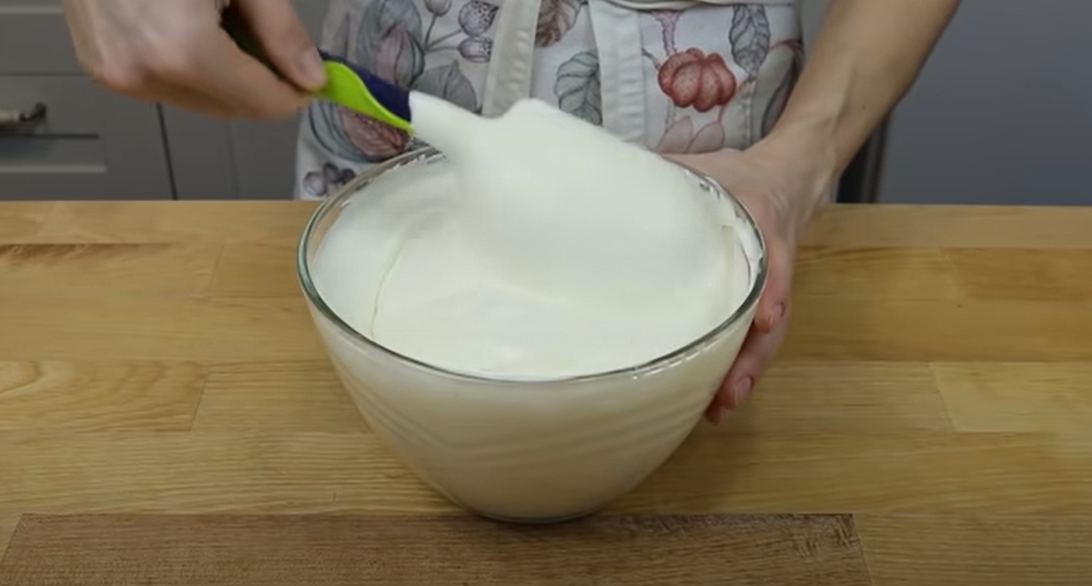 Wymieszaj żelatynę z wodą i pozwól jej się stężeć. Do osobnej miski wlej śmietanę, dodaj cukier waniliowy i ubij wszystko na pianę. Wstaw całość do lodówki.