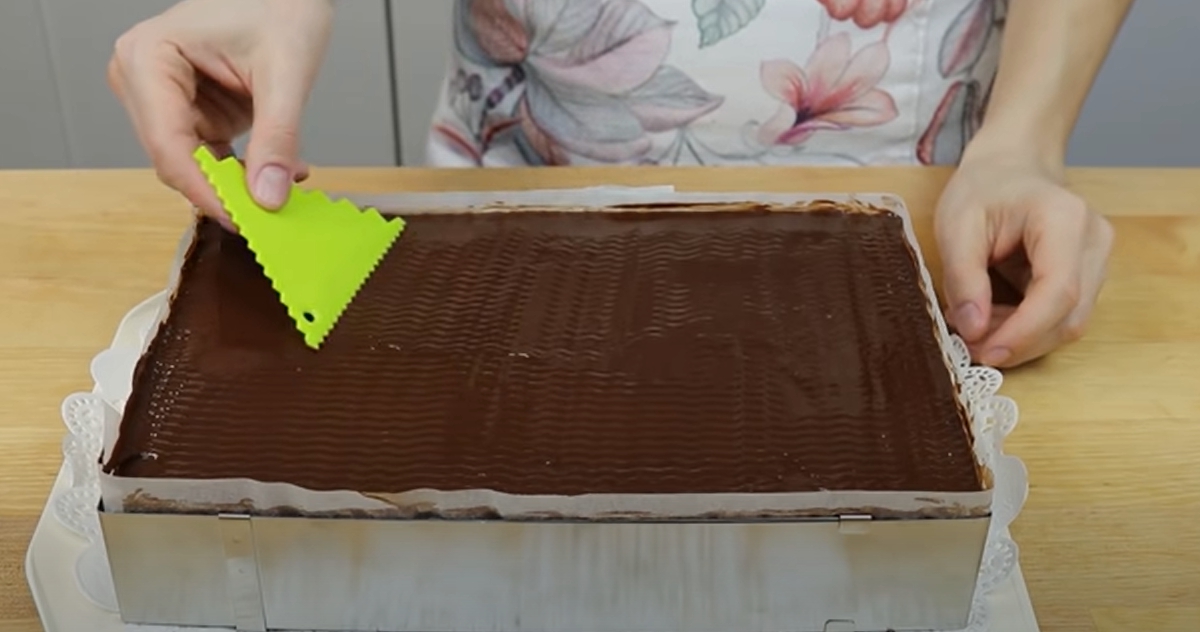 Następnie gotową polewę należy wylać równomiernie na górną część ciasta. Gotowe ciasto odstawić do lodówki na około 6 godzin.