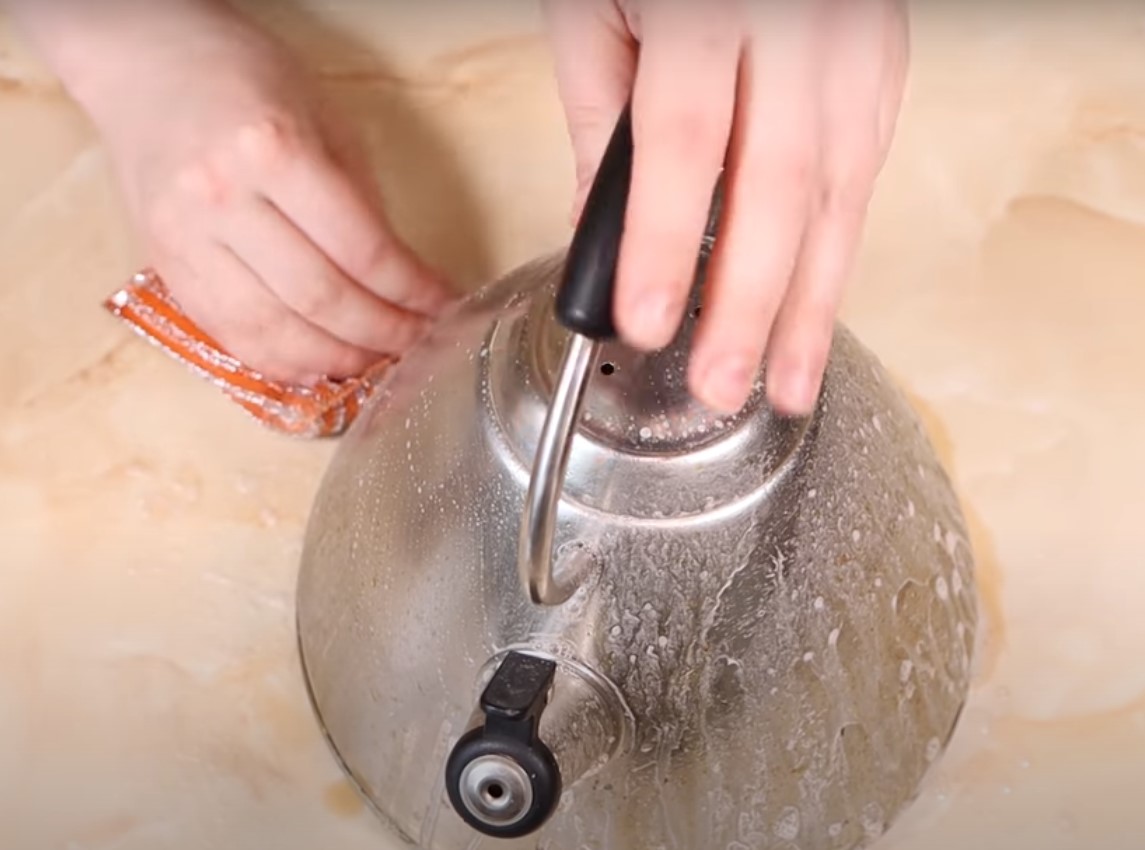Tak przygotowaną mieszanką spryskaj dowolną powierzchnię, którą chcesz wyczyścić, na przykład naczynia kuchenne, kuchenkę, zlew.
